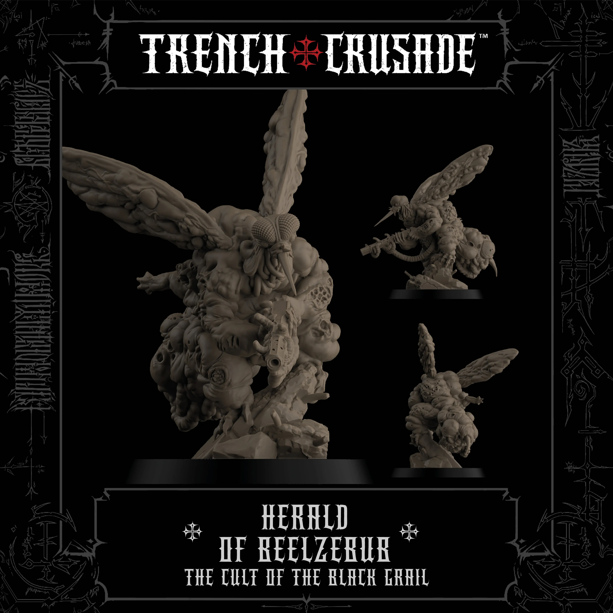 The wretched souls who take to the air as Heralds of Beelzebub, scouts of the Order of the Fly, have undergone a hideous metamorphosis. Melded with hell-flies to become monstrous winged insects, their tormented human bodies remain conscious as they are slowly eaten from within. Their buzzing fills the air with a sickly, pestilent drone, and they wield weapons crawling with parasitic worms, their sentient bullets burrowing through armour and liquefying the organs of their victims.