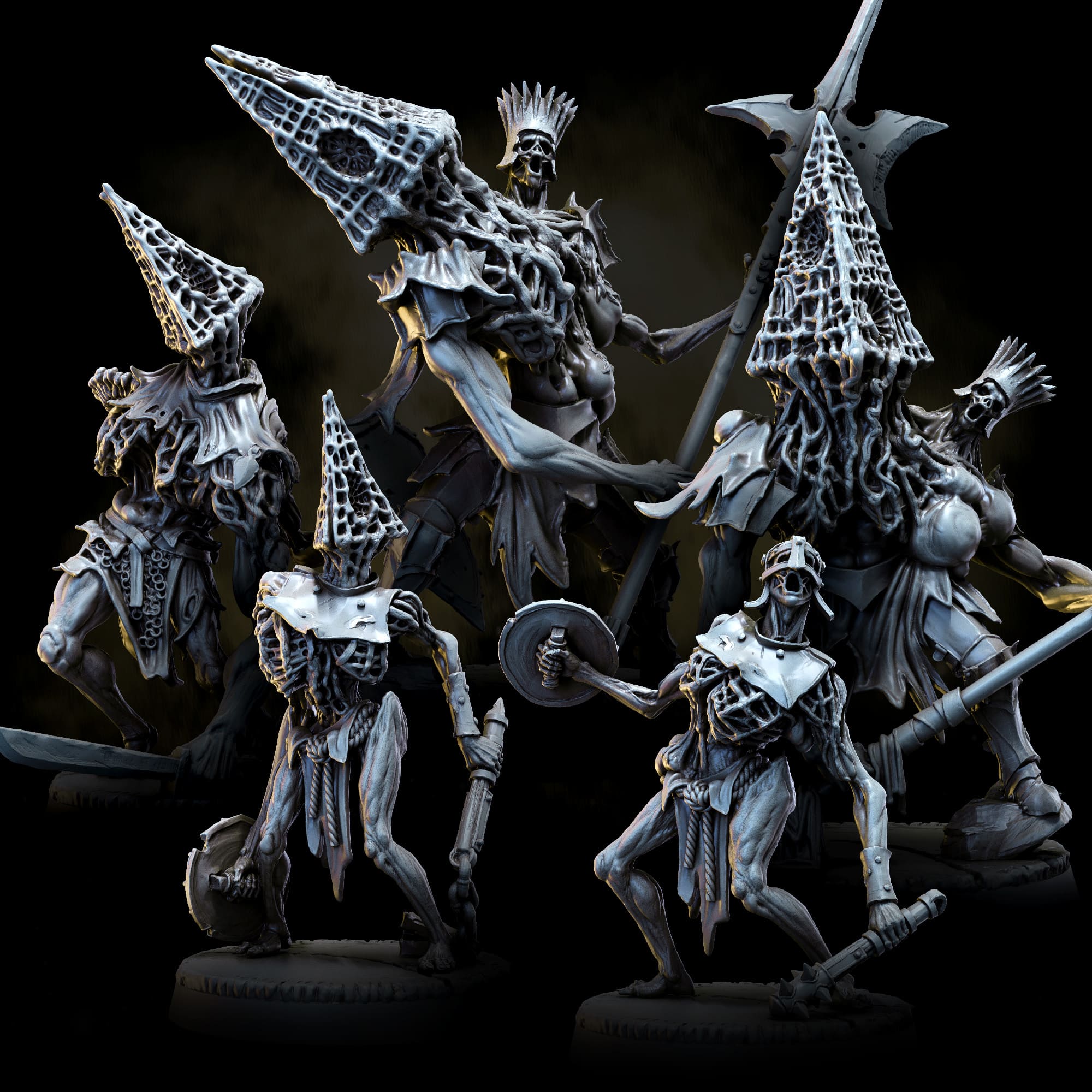 Twisted remnants of a forgotten crusade, reshaped by the Ashen Wastes into grotesque echoes of war.Contains three Subsumed Crusaders on 25mm bases and two Subsumed Crusader Brutes on 32mm bases.